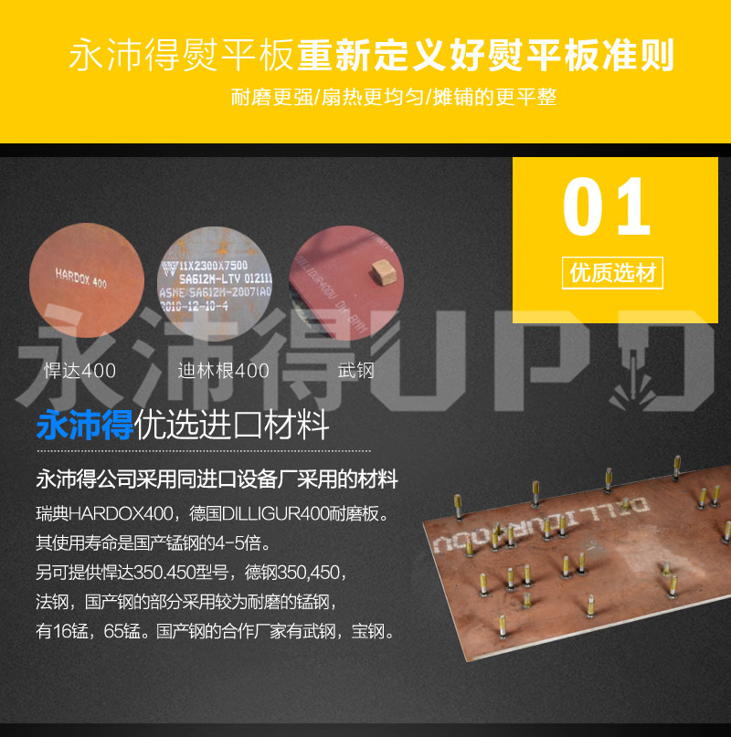 永沛得自主生产熨平板适用于福格勒、沃尔沃、宝马格、戴纳派克、三一、徐工、中联、华通、柳工、陕建摊铺机