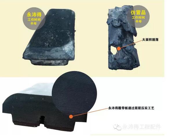 永沛得自推出的分离式履带板,受到市场上认可,但是仿冒品也跟来了,今天让我们看看仿冒品与正品的区别。