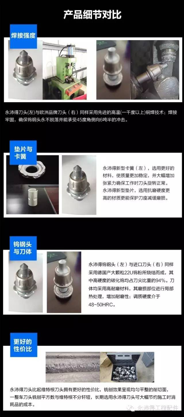 永沛得刀头全部由台湾总公司生产出口大陆。二十年以来赢得了良好的口碑和多方赞誉。刀头碳化钨基合金刀尖采用专利配方高温烧结,硬度达到合理的HRC90,优质高效、性能优越。